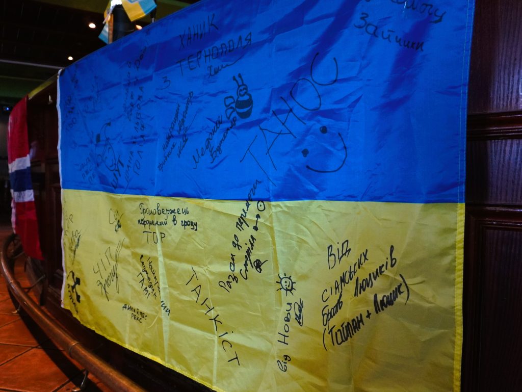 Популярністю користувалась благодійна лотерея – розігрували українські атрибути та сувеніри. Спільними зусиллями вдалося зібрати майже 48 000 крон на наступні конвої.