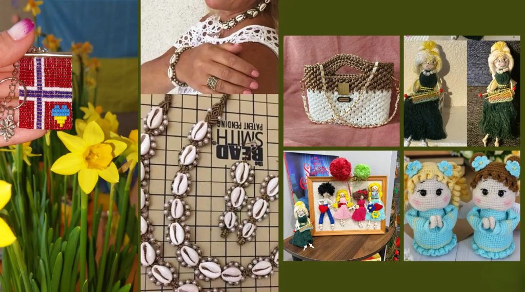 На виставці «З України – з любов’ю» ви побачите вироби з бісеру, макраме, речі, в’язані гачком. А також – авторські іграшки, свічки ручної роботи, живопис.